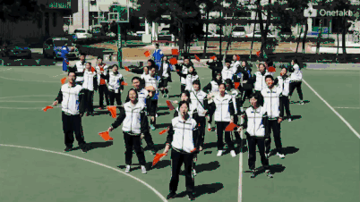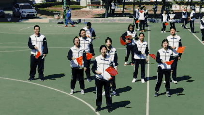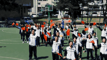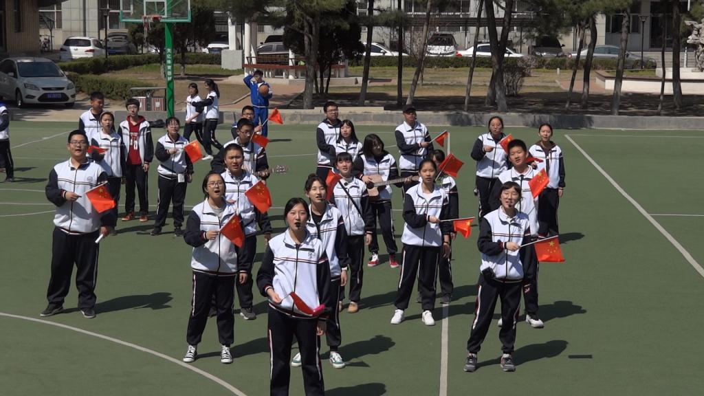 当日中午,像往常一样,吉大高中的操场满是打篮球、踢足球、散步的同学们。12:30分整,音乐响起,第一位手持小红旗的同学走到"C"位,跟随伴奏深情地唱起了《我和我的祖国》。